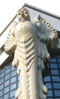 Die Hauptabteilungsleiterin für Bestandsaufbau gab einen Überblick über das als Bibliothek geplante, 1987 errichtete Gebäude an der Ecke Karlsplatz/Wiedner Hauptstraße mit den markanten Eulenskulpturen. Der Bestand umfasst 1,43 Mio Bücher, 47.000 E-Books und 5.000 Fachzeitschriften, 4.000 davon in elektronischer Form, wie überhaupt der Trend stark in Richtung digitaler Medien geht.