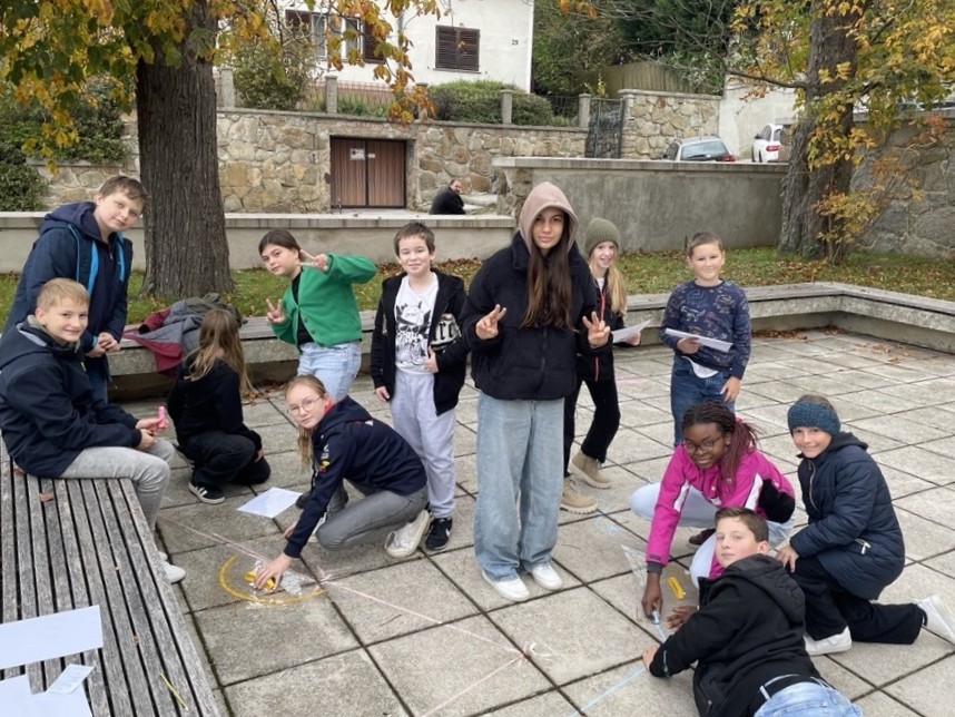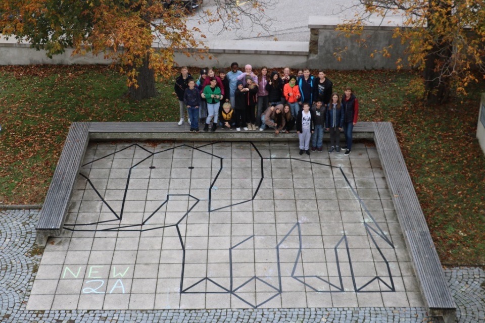 Ein besonderes Highlight ist das mathematische Projekt „Elefant“, bei dem das Pflaster am Mephistoplatz zu einem übergroßen Koordinatensystem wird, in das die Kinder vorgegebene Punkte einzeichnen, die am Schluss einen Elefanten ergeben sollen.