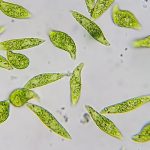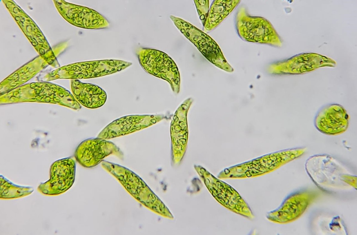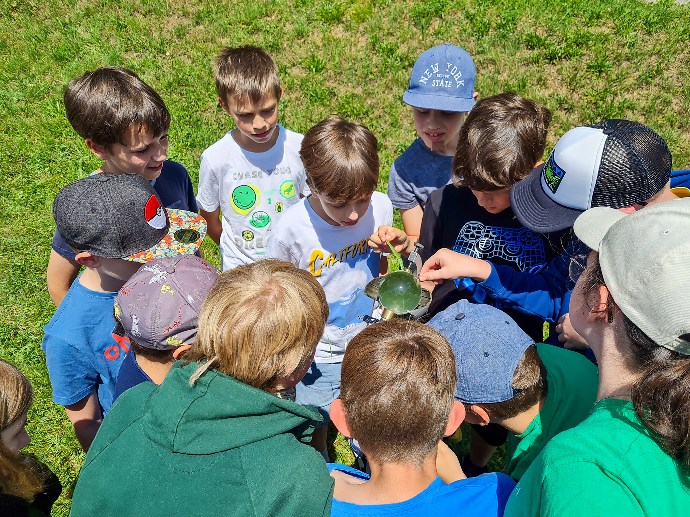 Die mikroskopische Welt der Einzeller und mikroskopisch kleinen Vielzeller wird bestaunt und erforscht. Von den Cyanobakterien, über Euglena (siehe unten) bis zu den Pantoffeltierchen wird alles untersucht, was sich gerade in unseren Proben finden lässt. Manchmal finden sich sogar Hydra sp. und Bärtierchen in den Proben. Mit Fachliteratur werden systematische Grundlagen der Biologie gefestigt und die große Vielfalt der Lebewesen bewusst gemacht.
