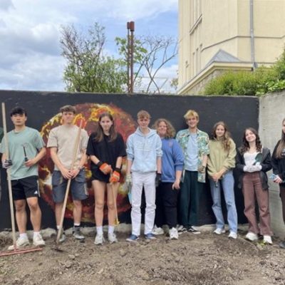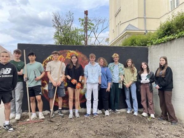 Immer wieder finden auch fächerübergreifende Projekte statt. Gleich beim Schuleingang findet sich ein kleines Stück einer Wiesenfläche, die sich langfristig zu einem insektenfreundlichem Stück Natur in der Stadt entwickeln soll. Es finden immer wieder Exkursionen zu dieser Fläche statt, um die Veränderung über die Zeit aber auch in den Jahreszeiten erlebbar und sichtbar zu machen. Im Rahmen des Wahlpflichtfaches BIU halfen Schülerinnen und Schüler mit, dieses Stück urbane Natur zu ermöglichen.