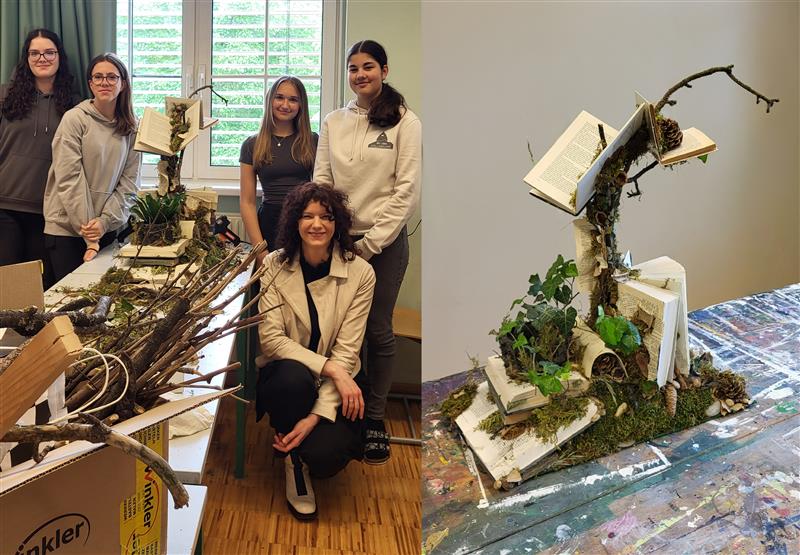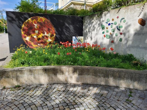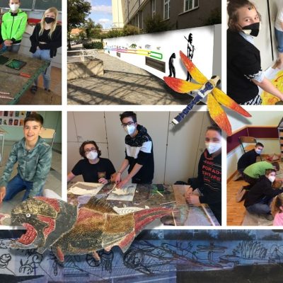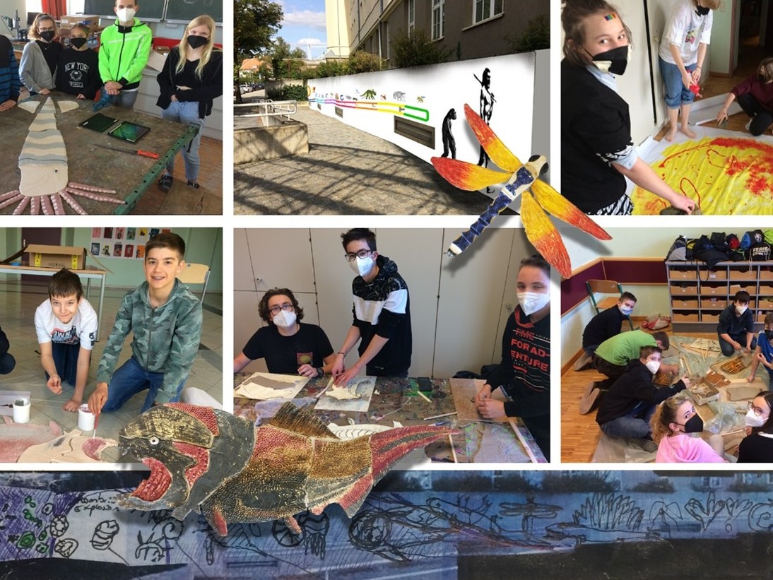 Ebenfalls beim Schuleingang wurde in einem fächerübergreifenden Projekt in Kunst und Gestaltung exemplarisch die Evolutionsgeschichte der Erde anhand markanter Lebensformen aus unterschiedlichen erdgeschichtlichen Epochen dargestellt. Jedes Lebewesen hat eine eigene Stammesgeschichte, einen systematischen Platz im natürlichen Ordnungssystem und eine Bedeutung im Ökosystem der Erde. Mit diesem Projekt soll die einzigartige Entwicklungsgeschichte der Lebenswelt der Erde dargestellt werden, aber auch die Zerbrechlichkeit der rezenten Lebensformen.