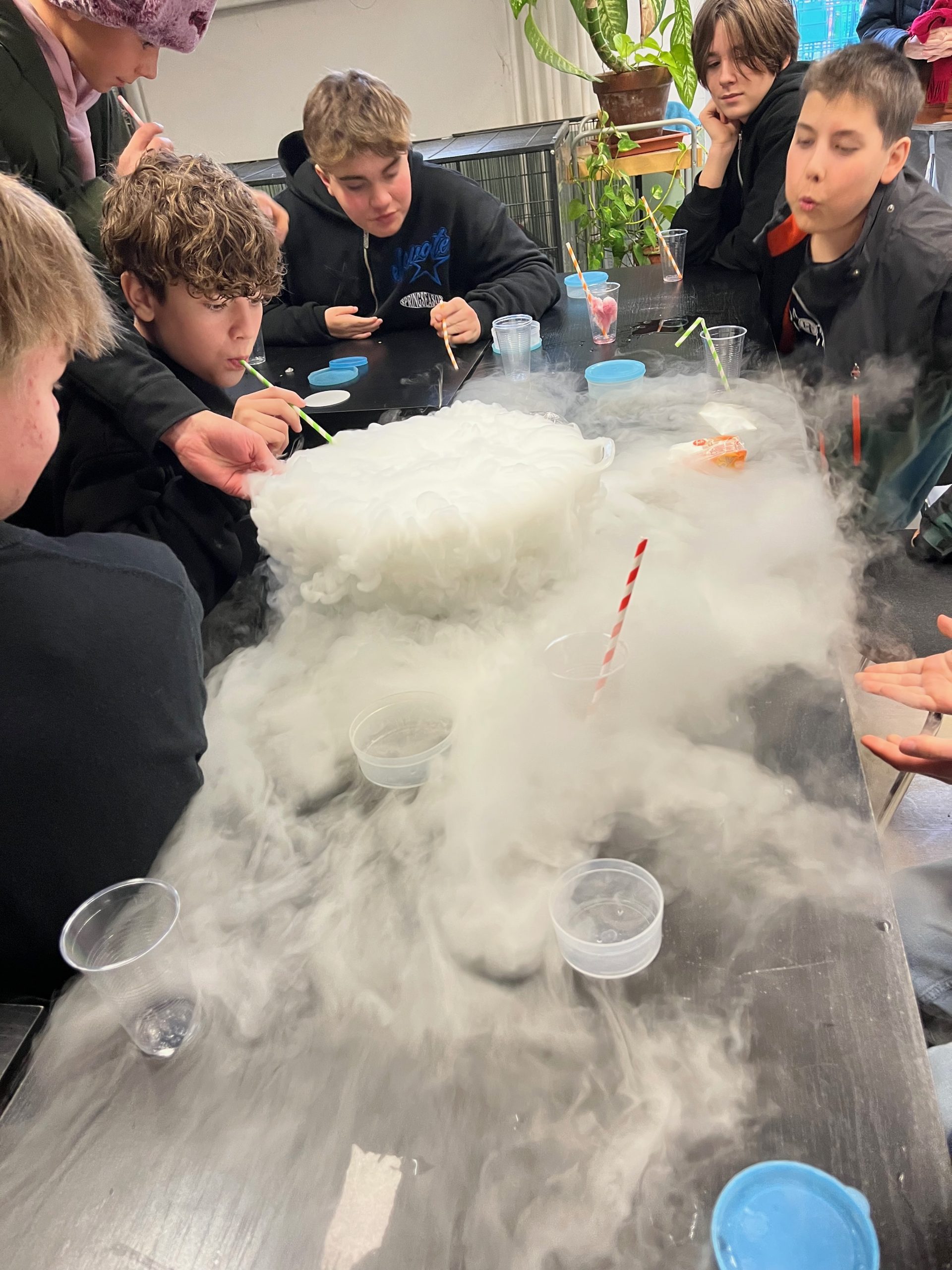 Der Unterricht der 4. Klasse beschäftigt sich mit Stoffen, ihren Eigenschaften und Verwendungen. Der Aufbau der Materie wird mit Hilfe von Modellen erklärt. Verschiedene Typen chemischer Reaktionen wie z.B. Säure-Base- und Redox-Reaktionen sowie einfache organische Vorgänge werden erläutert und durch Experimente veranschaulicht.